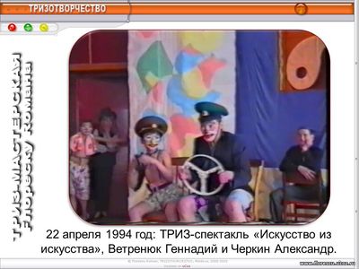 22 апреля 1994 год: ТРИЗ-спектакль «Искусство из искусства», Ветренюк Геннадий (6 "А") и Черкин Александр (9 "А").