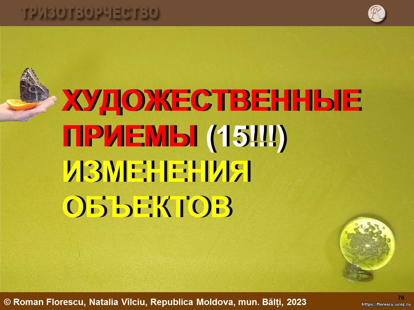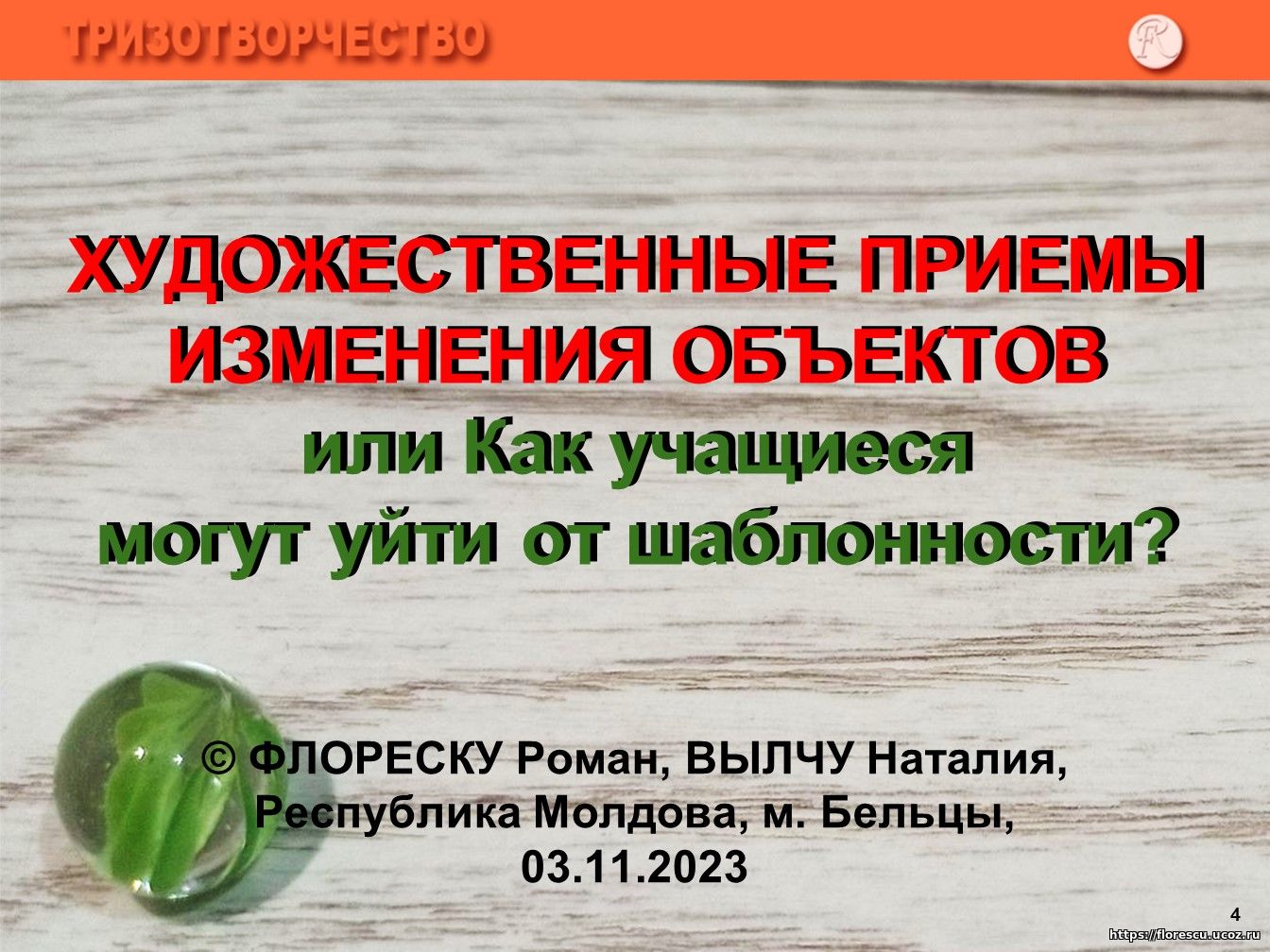 Поиск решения художественной задачи: технологичный выход на небанальную техническую систему для визуальных искусств, 03.11.2023. Бельцы, Республика Молдова.