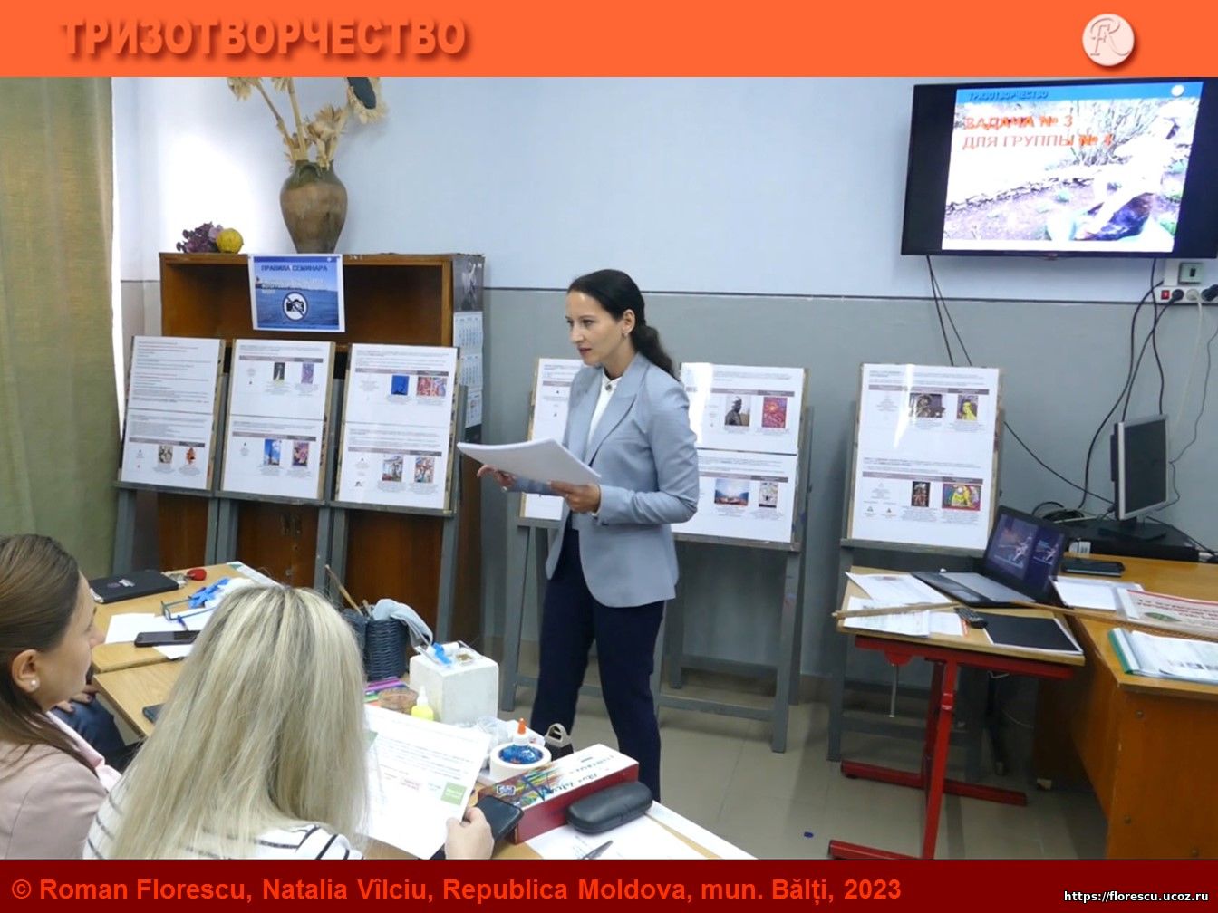 Фрагмент оформления аудитории: правила семинара и постеры с приемами, 03.11.2023. Бельцы, Республика Молдова.