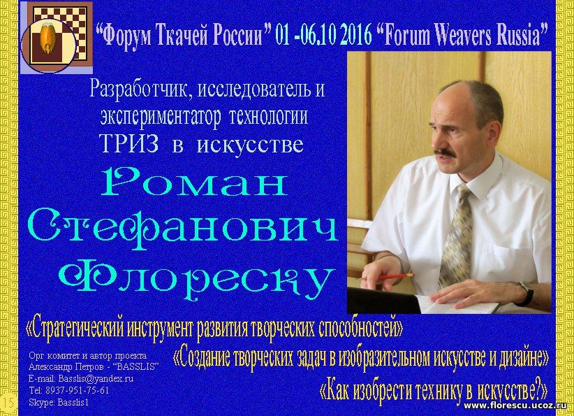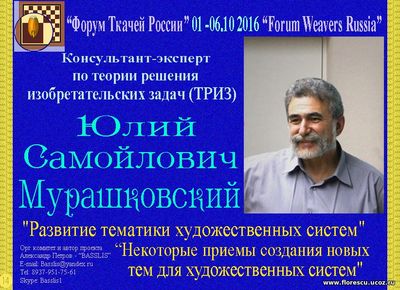 СТРАТЕГИЧЕСКИЙ ТРИЗ-ИНСТРУМЕНТ РАЗВИТИЯ ТВОРЧЕСКИХ СПОСОБНОСТЕЙ МАСТЕРОВ РУЧНОГО ТКАЧЕСТВА РОССИИ, 2016 |