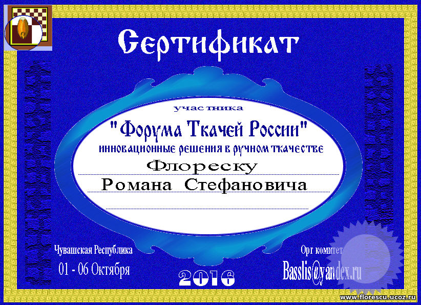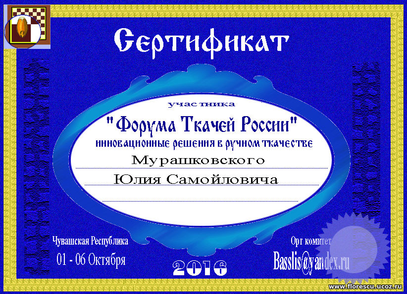 Автор и инициатор приглашения в проект «Форум ткачей России» – Петров Александр Яковлевич (Чебоксары, Чувашская Республика, Россия) – профессиональный текстильщик, специализирующийся в жаккардовом ткачестве, разработке проектов, связанных с запуском ткацких производств, стратегическом планировании текстильных подразделений предприятий, адаптации инновационных разработок в области ручного и машинного ткачества.