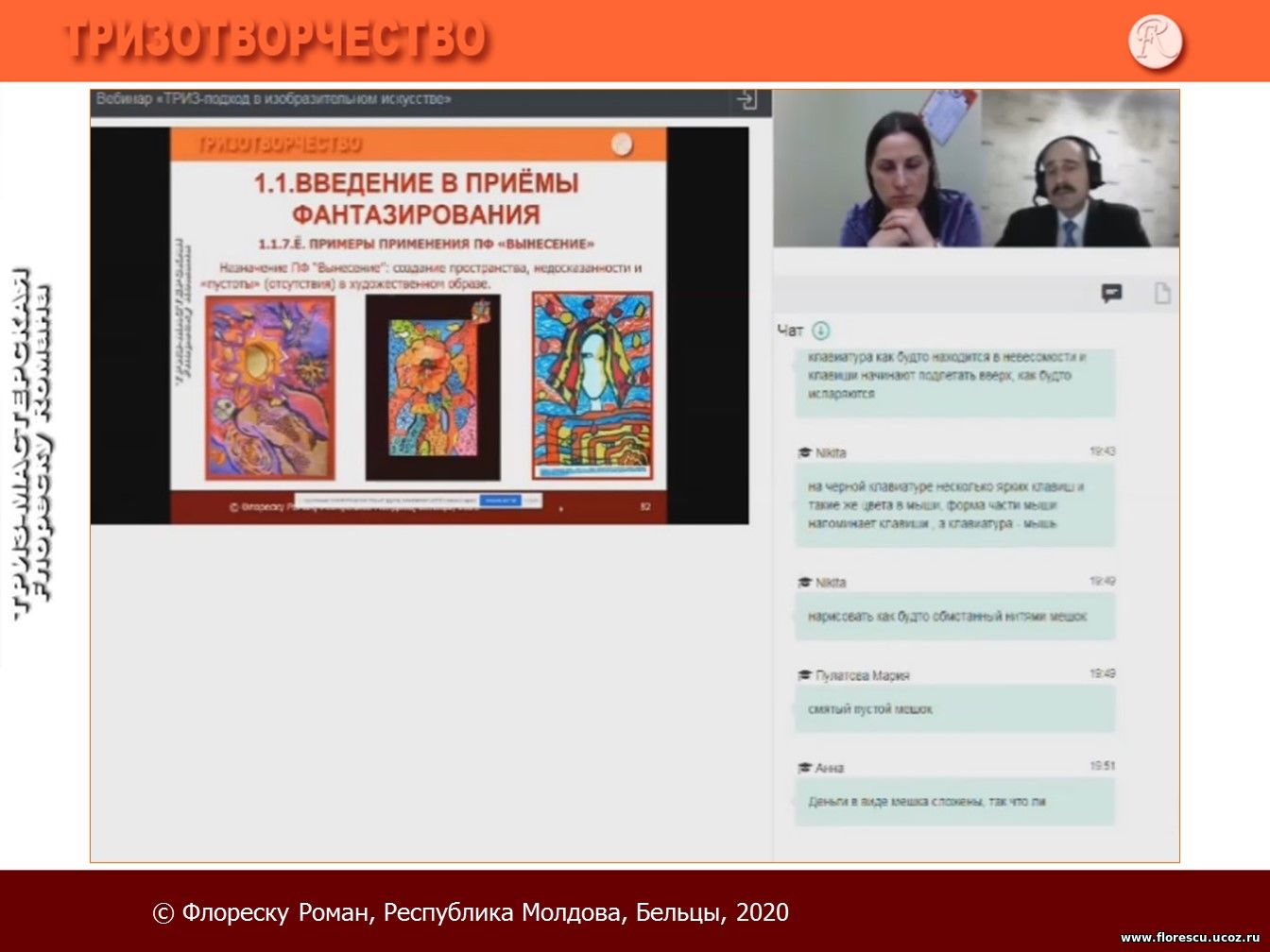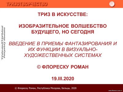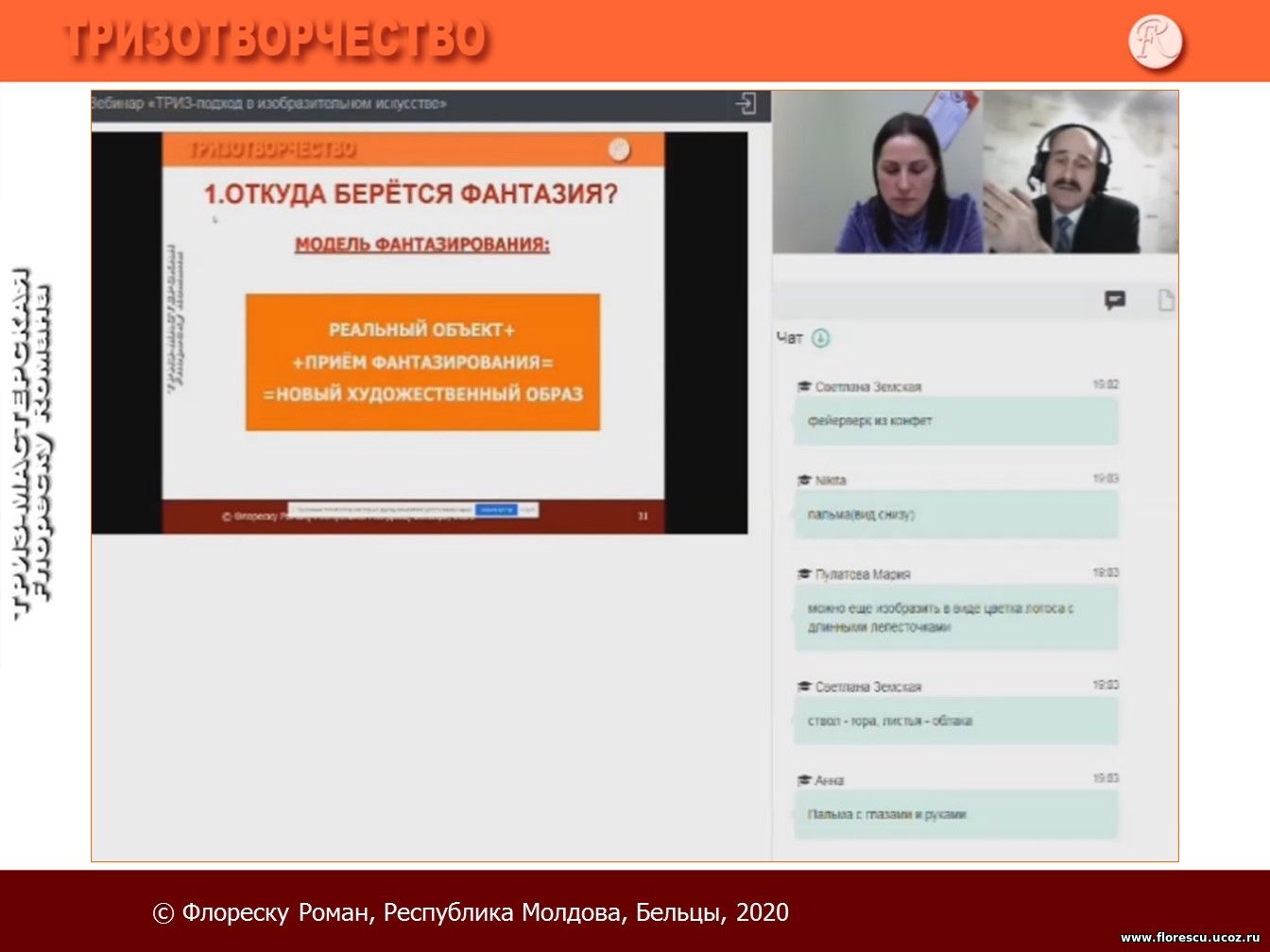 ВЕБИНАР: ТРИЗ ПОДХОД В ВИЗУАЛЬНЫХ ИСКУССТВАХ, МОЛДОВА-РОССИЯ, 19 МАРТА 2020 ГОД |