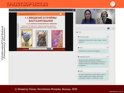 19 марта 2020 года (18:30-20:50 по времени Республики Молдова) Флореску Роман Стефанович провел интерактивный вебинар на тему «ТРИЗ-подход в изобразительном искусстве или волшебство будущего, но сегодня». Дистанционный семинар длился чуть более 2-х астрономических часов. Ознакомительный тренинг предназначен был для художников-педагогов, живописцев, графиков, скульпторов, архитекторов, декораторов, дизайнеров, искусствоведов, желающих эффективно (без перебора вариантов) решать возникающие художественные изобретательские задачи.