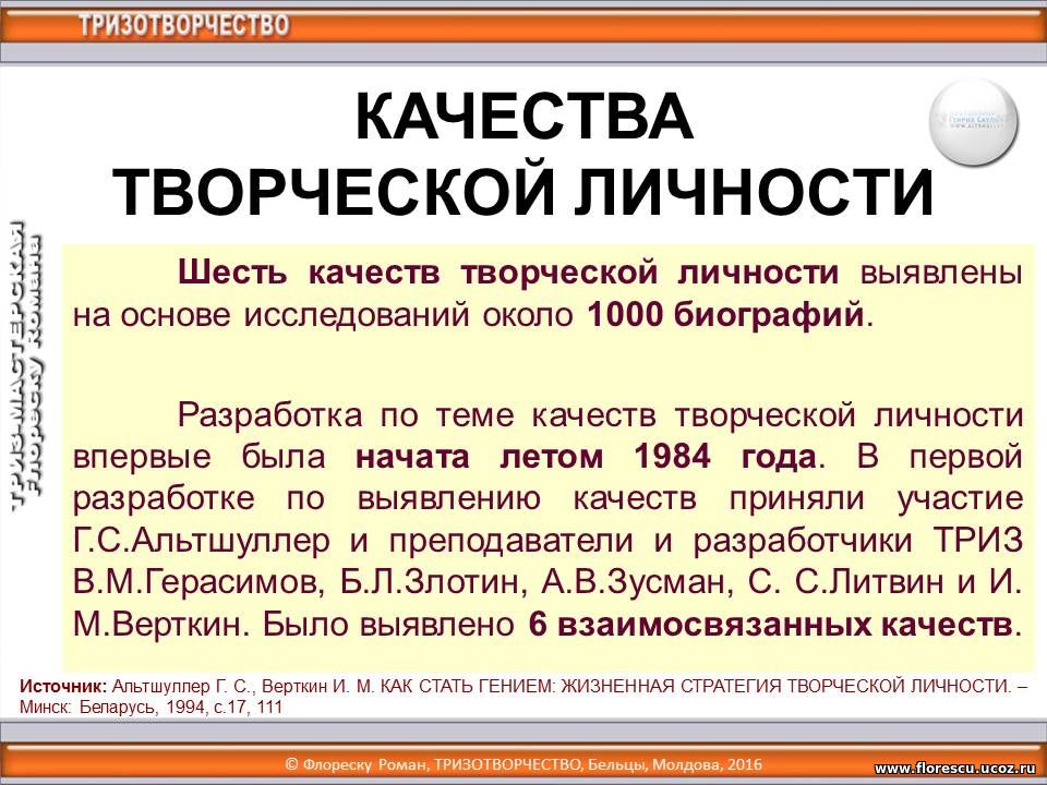 | © Roman Florescu, TRIZOTVORCESTVO, Republica Moldova, 2008-2026 При использовании любых материалов сайта ссылка на источник обязательна. Для коммерческого использования информации сайта необходимо разрешение автора. Все опубликованные материалы охраняются Законом об авторском праве и смежных правах Республики Молдова, международными договорами и другими нормативными актами » |