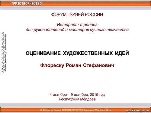 | © Roman Florescu, TRIZOTVORCESTVO, Republica Moldova, 2008-2026 При использовании любых материалов сайта ссылка на источник обязательна. Для коммерческого использования информации сайта необходимо разрешение автора. Все опубликованные материалы охраняются Законом об авторском праве и смежных правах Республики Молдова, международными договорами и другими нормативными актами » |