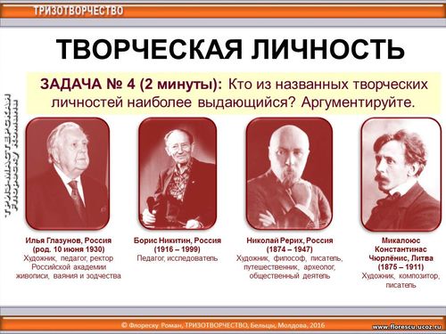 | © Roman Florescu, TRIZOTVORCESTVO, Republica Moldova, 2008-2025 При использовании любых материалов сайта ссылка на источник обязательна. Для коммерческого использования информации сайта необходимо разрешение автора. Все опубликованные материалы охраняются Законом об авторском праве и смежных правах Республики Молдова, международными договорами и другими нормативными актами » |